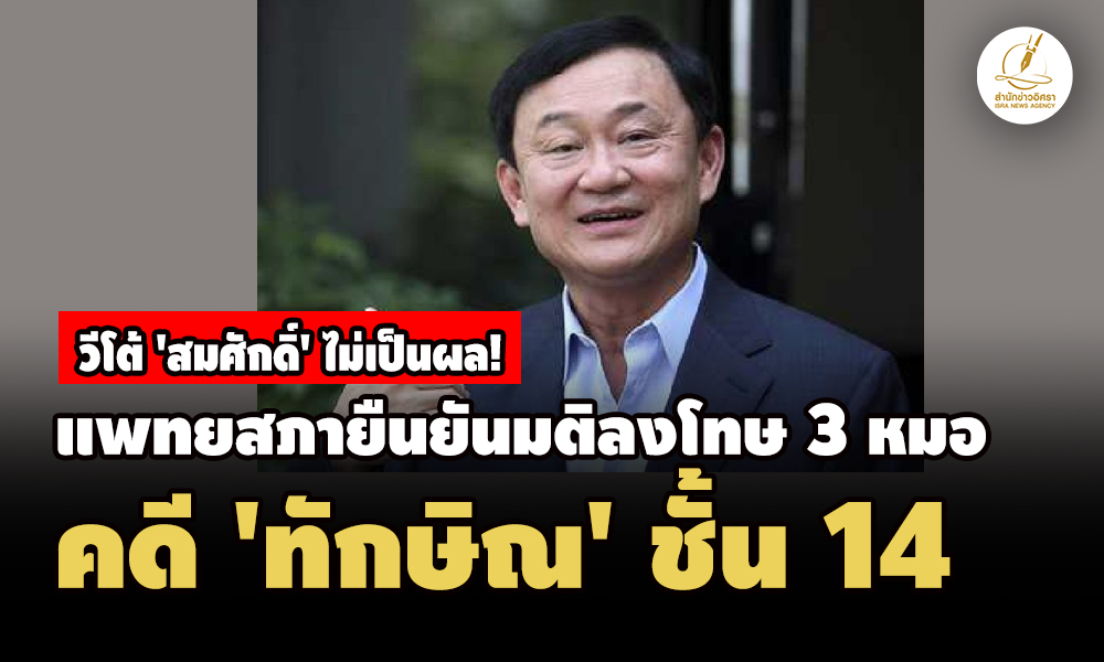 - กก.ทีมสมศักดิ์ สรุปความเห็นมติลงโทษ 3 หมอ ยื่นสภานายกพิเศษฯ เผยไม่มีผลต่อคดีทักษิณชั้น 14