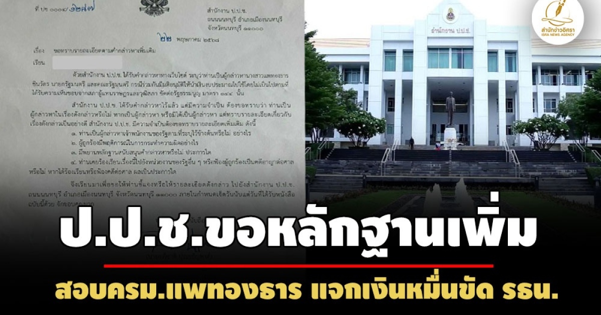 โดยระบุว่า สำนักงาน ป.ป.ช.ได้รับคำกล่าวหา กรณีกล่าวหาว่านางสาวแพทองธาร ชินวัตร นายกรัฐมนตรี และคณะรัฐมนตรี ร่วมกันมีมติอนุมัติให้นำเงินงบประมาณไปใช้โดยไม่เป็นไปตามที่ได้รับความเห็นชอบจากสภาผู้แทนราษฎรและวุฒิสภา ขัดต่อรัฐธรรมนูญ มาตรา 144 สำนักงาน ป.ป.ช.มีความจำเป็นต้องขอทราบว่า ท่านเป็นผู้กล่าวหาในเรื่องดังกล่าวหรือไม่ หากเป็นผู้กล่าวหา หรือมิได้เป็นผู้กล่าวหา แต่ทราบรายละเอียดเกี่ยวกับเรื่องดังกล่าวเป็นอย่างดี สำนักงาน ป.ป.ช.มีความจำเป็นต้องขอทราบรายละเอียดเพิ่มเติม 1. ท่านเป็นผู้กล่าวหาเจ้าพนักงานของรัฐตามที่ระบุหรือไม่ อย่างไร 2. ผู้ถูกร้องมีพฤติกรรมในการกระทำความผิดอย่างไร 3.มีพยานหลักฐานสนับสนุนคำกล่าวหาหรือไม่ ประการใด 4. ท่านเคยร้องเรียนเรื่องนี้ไปยังหน่วยงานของรัฐอื่น ๆ หรือฟ้องผู้ถูกร้องเป็นคดีอาญาต่อศาลหรือไม่ หากได้ร้องเรียนหรือฟ้องคดีต่อศาล ผลเป็นประการใด ขอให้ชี้แจงหรือให้รายละเอียดไปยังสำนักงาน ป.ป.ช.ภายในกำหนด 7 วัน นับแต่วันที่ได้รับหนังสือฉบับนี้
