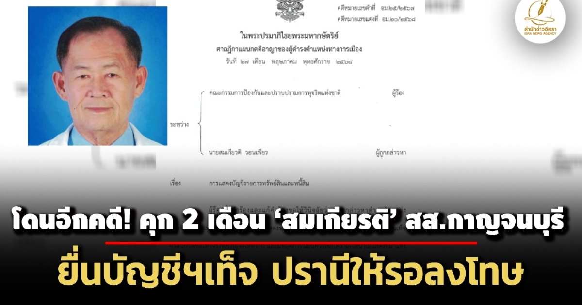- ศาลฎีกาฯสั่งจำคุก 4 เดือน ‘สมเกียรติ’อดีต สส.กาญจนบุรี ยื่นบัญชีฯเท็จ-ให้รอลงโทษ (18)