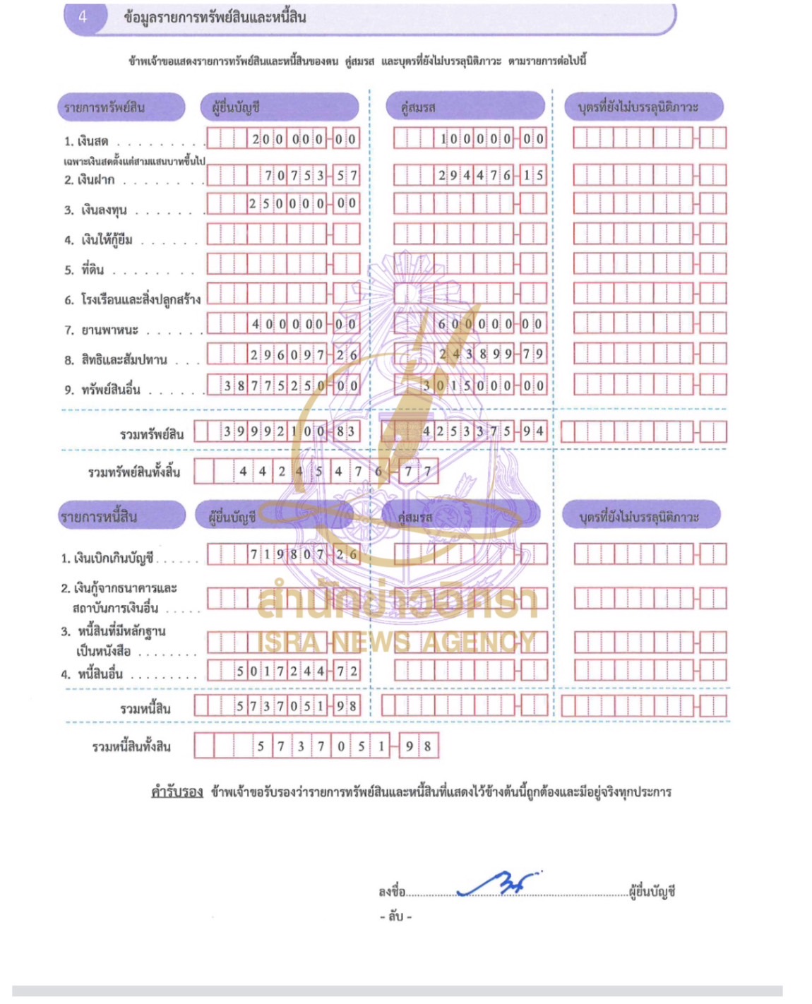นายกฤษฏ์ และนางอรุณี เพ็ญสุภา คู่สมรส แจ้งมีทรัพย์สินทั้งสิ้น 44,245,476 บาท แจ้งมีหนี้สินทั้งสิ้น 5,737,051 บาท