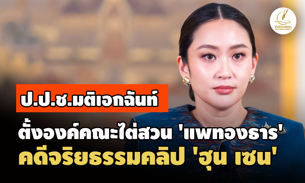 ป.ป.ช. ลงมติมติเอกฉันท์ตั้งองค์คณะไต่สวน 'แพทองธาร ชินวัตร' นายกรัฐมนตรี คดีจริยธรรมคลิปเจรจรา 'ฮุน เซน' มอบหมาย 'สุชาติ ตระกูลเกษมสุข' ประธาน-'ประภาศ คงเอียด' ร่วมเป็นองค์คณะไต่สวน