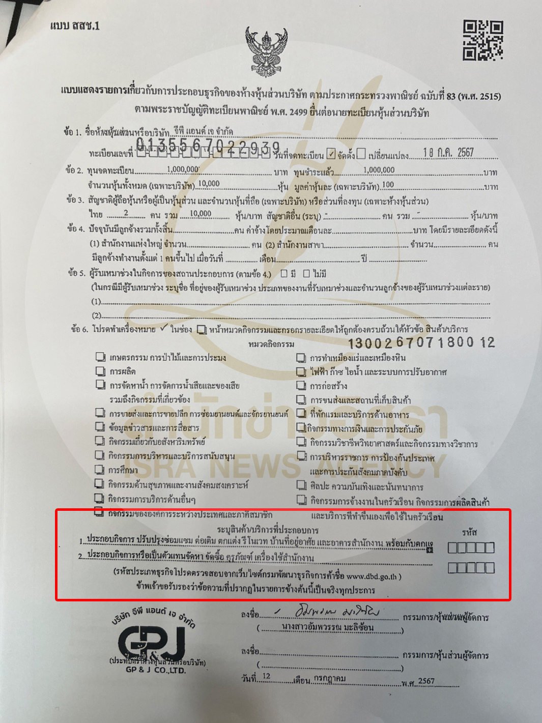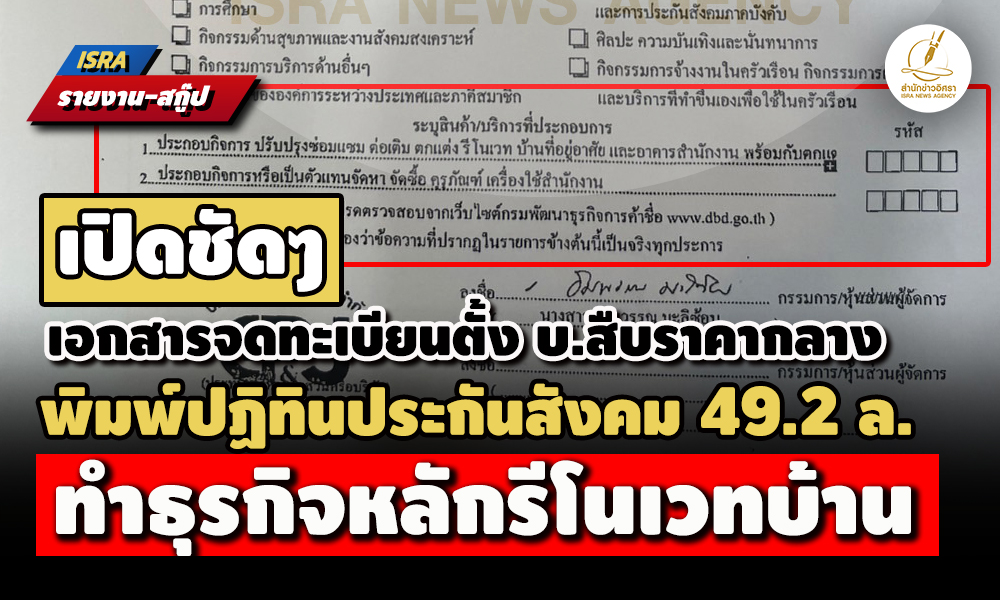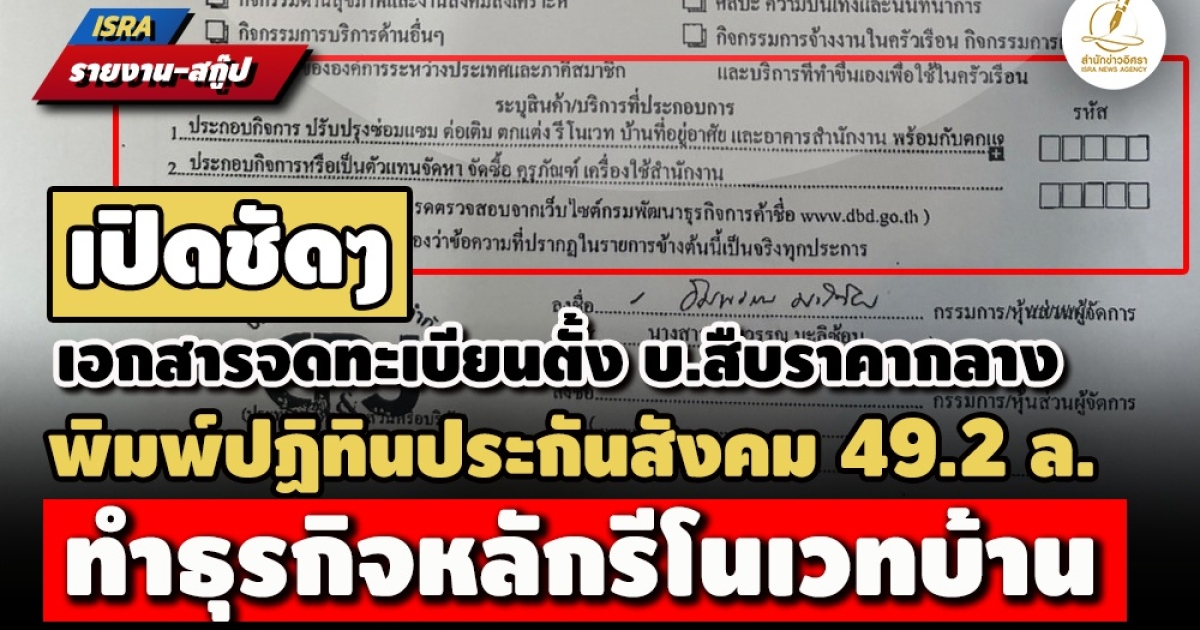• เปิดเอกสารจดทะเบียนตั้ง บ.สืบราคากลาง ปฏิทินประกันสังคม49.2 ล. ทำธุรกิจหลักรีโนเวทบ้าน