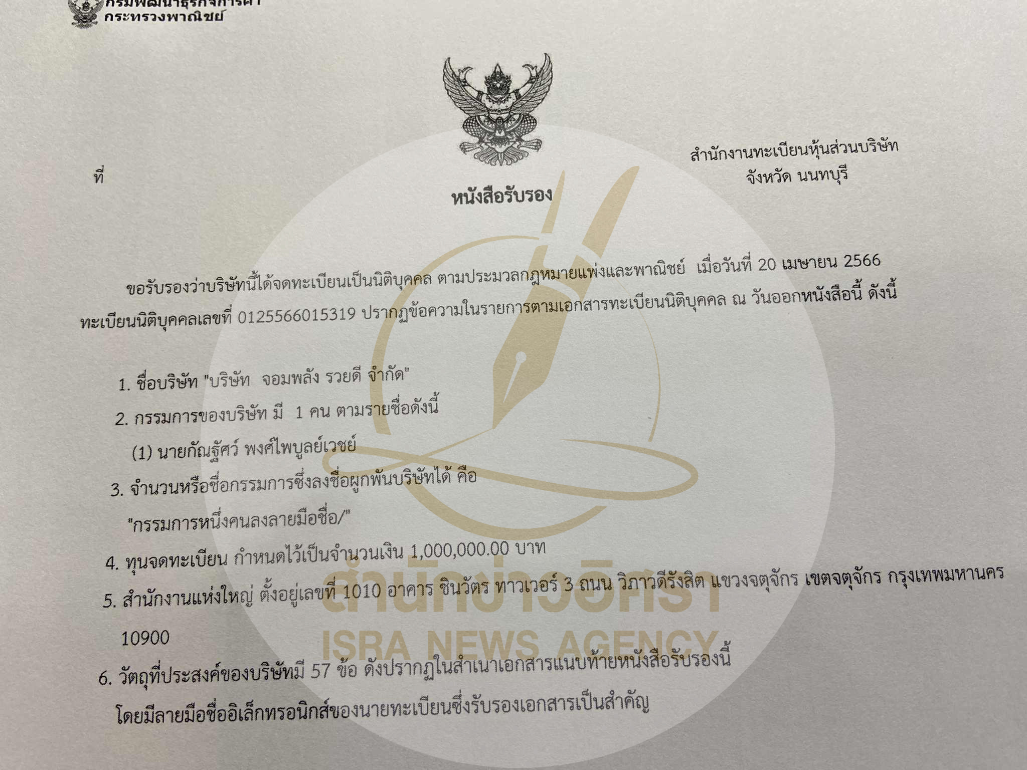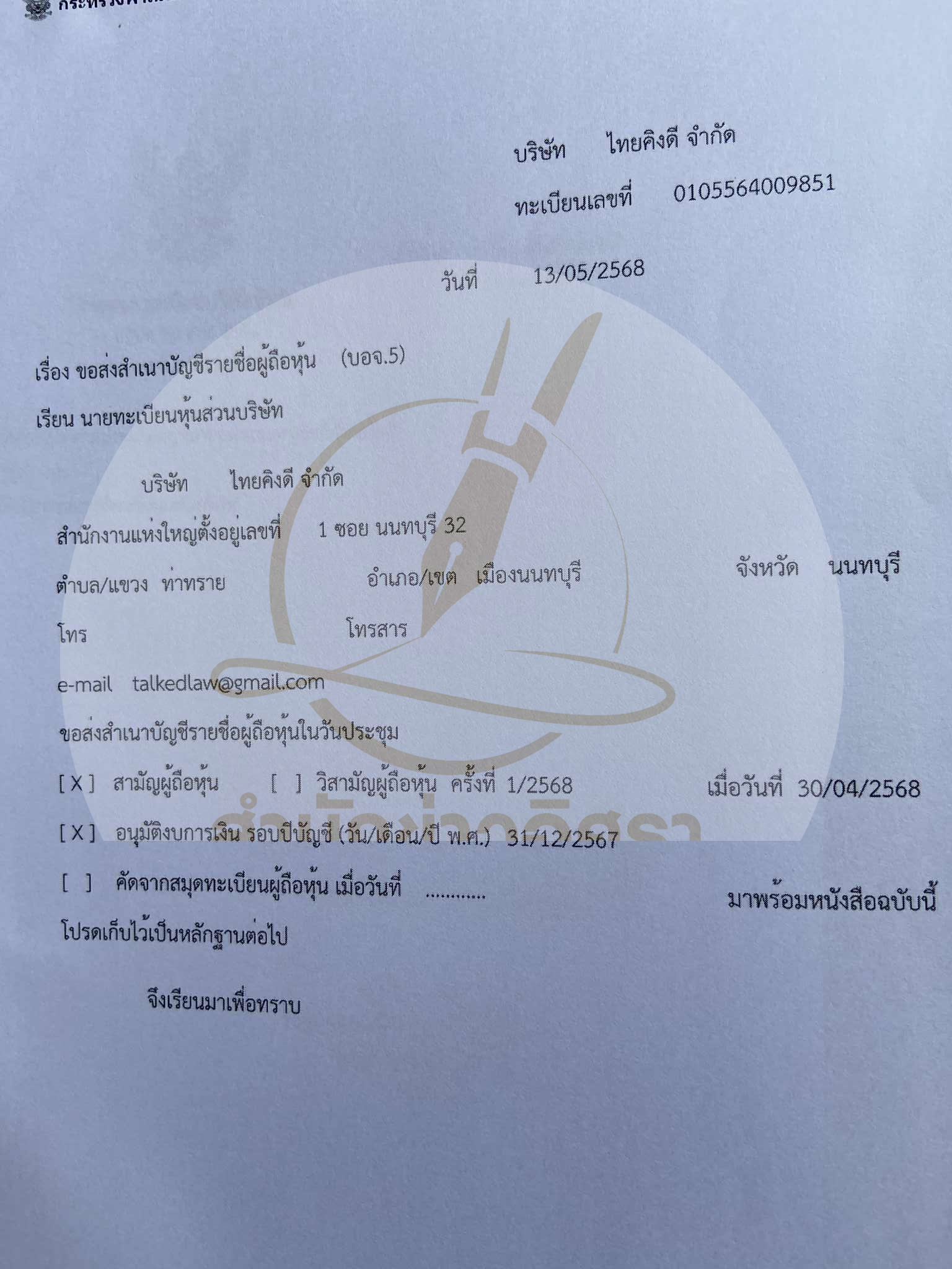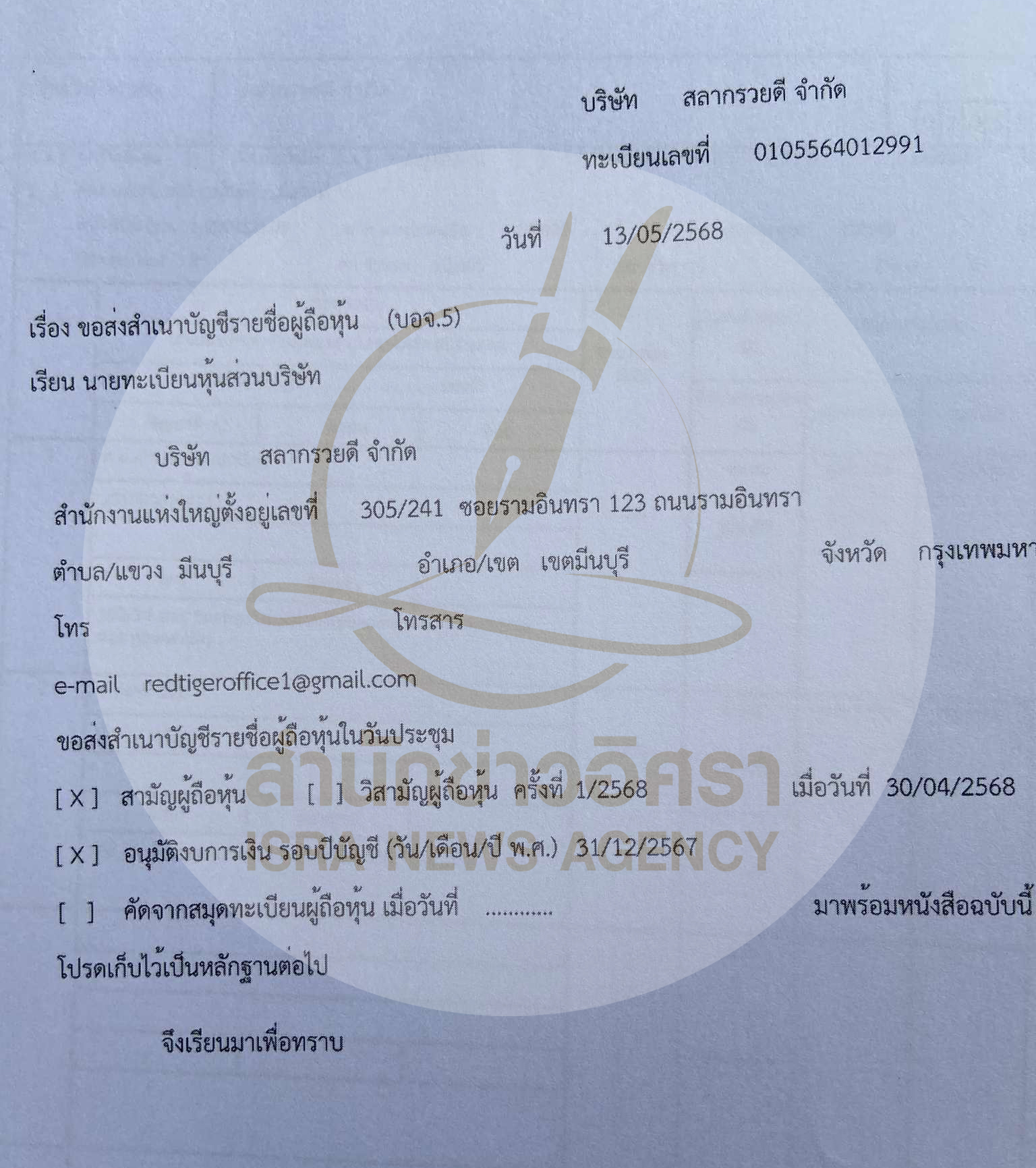 สำนักงาน : โรงแรมเดอะ รอยัล ริเวอร์ เลขที่ 219 ซอยจรัญสนิทวงศ์ 66/1 แขวง บางพลัด เขตบางพลัด กรุงเทพมหานคร 10700