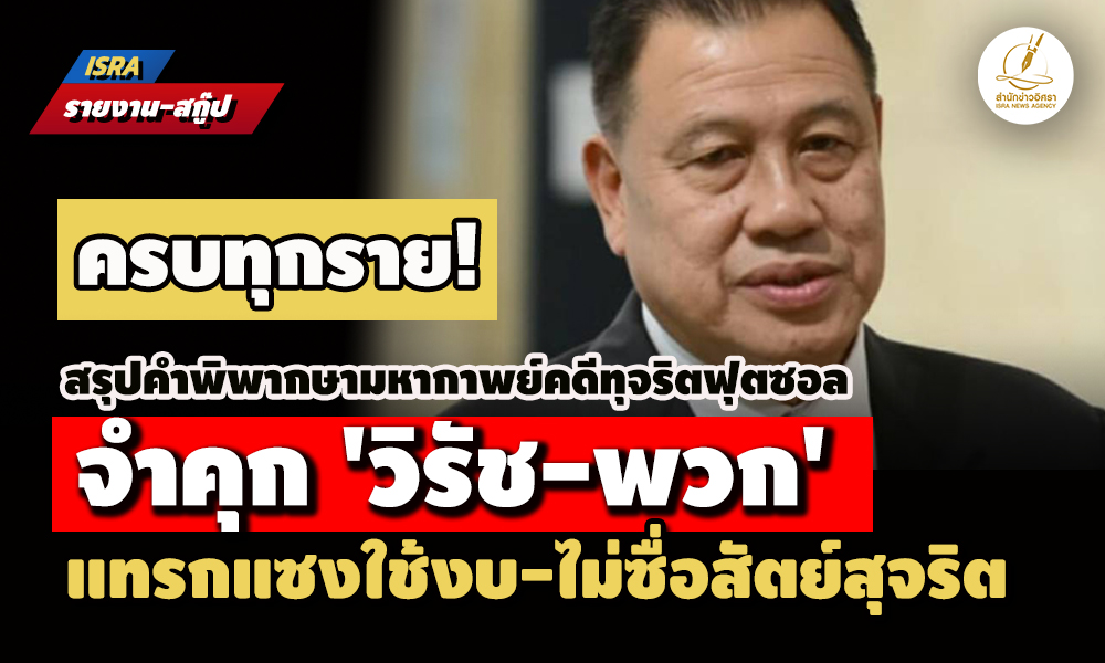 - ตัดสินแล้ว! คดีทุจริตฟุตซอล จำคุก 4 ปี 'วิรัช รัตนเศรษฐ'- เมียโดนด้วย ได้ประกันตัว