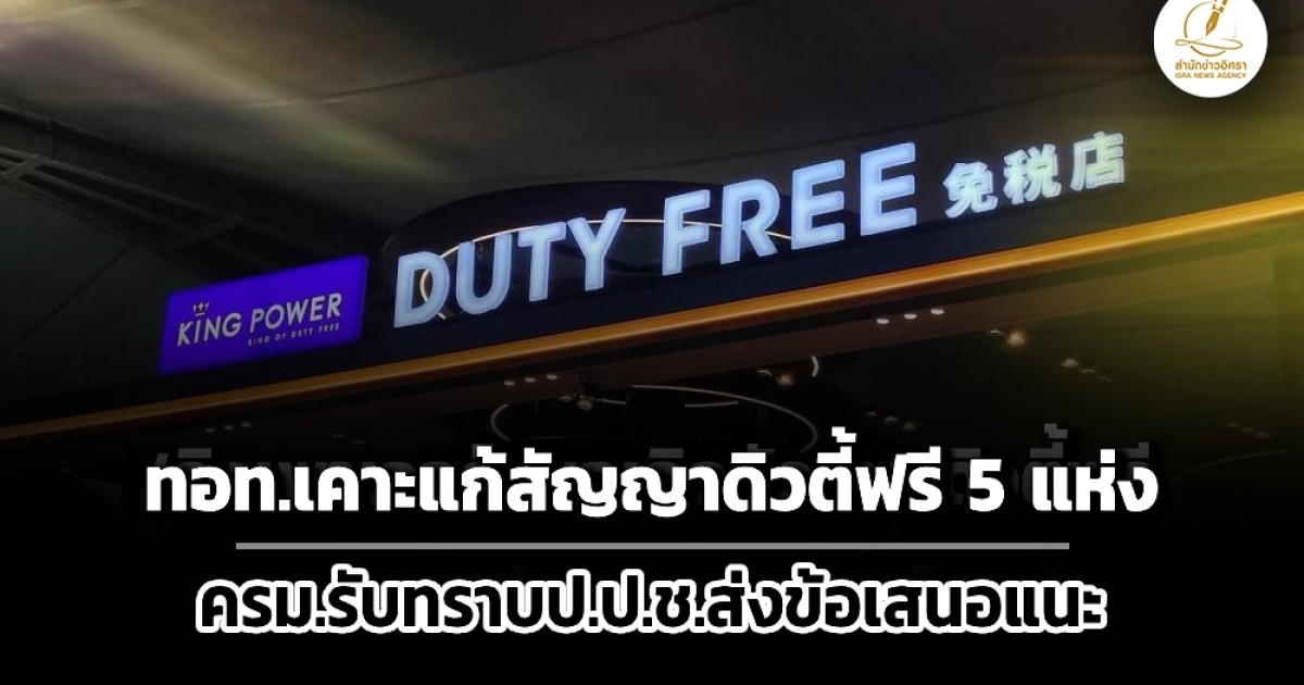 • บอร์ดทอท.เคาะแก้สัญญาดิวตี้ฟรีสนามบิน 5 แห่ง - ครม.รับทราบ ป.ป.ช.ส่งข้อเสนอแนะ