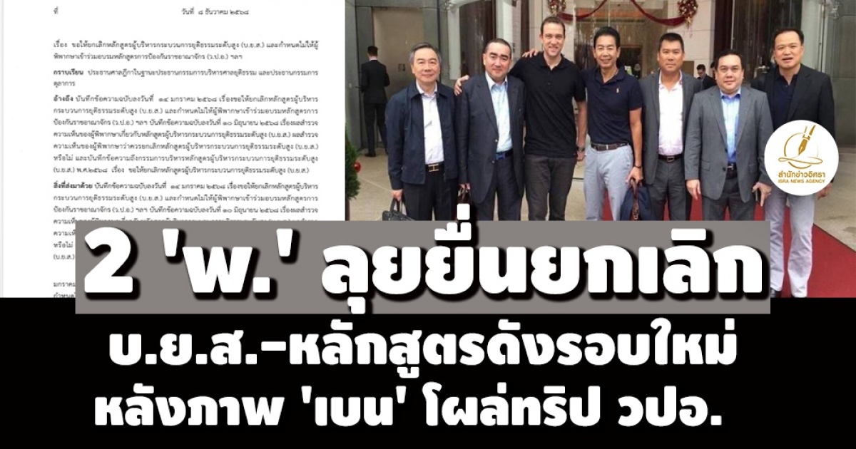 '2 พ.' สู้ไม่ถอย! ยื่นหนังสือปธ.ศาลฏีกา ขอยกเลิกหลักสูตร บ.ย.ส. ห้าม 'ผู้พิพากษาร่วมหลักสูตรดัง หลังภาพถ่าย 'เบน สมิธ' โผล่ถ่ายรูปทริป วปอ. ตอกย้ำไม่เกิดปย.เสริมระบบอุปถัมภ์ ยกความเห็นอดีตตุลาการศาลรธน.เยอรมันย้ำต้องไม่มีหลักสูตรสร้างเครือข่ายบุคคลภายนอก