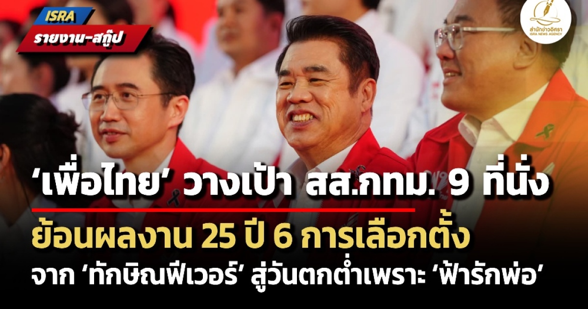 • ‘เพื่อไทย’ ตั้งเป้า สส.กทม. 9 ที่นั่ง ย้อนผลงานจาก ‘ทักษิณฟีเวอร์’ สู่วันตกต่ำเพราะ ‘ฟ้ารักพ่อ’