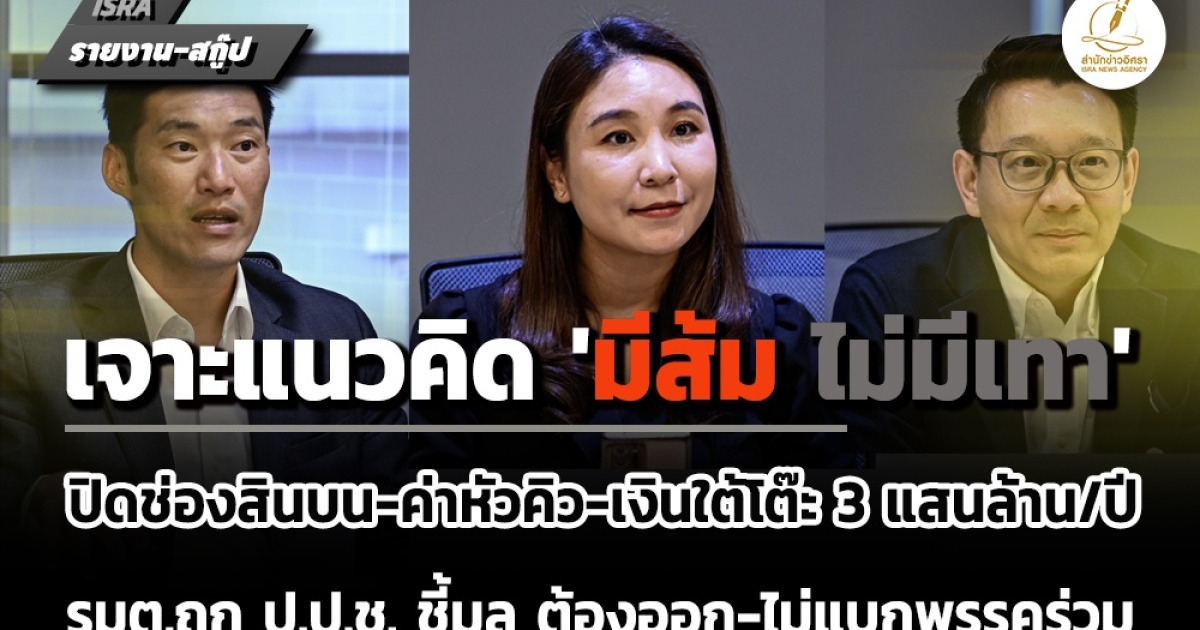 • เจาะแนวคิด 'มีส้ม ไม่มีเทา' กับ 3 แกนนำ 'ปชน.' ปิดช่องเงินสินบน-หัวคิว-ใต้โต๊ะ 3 แสนล้าน/ปี