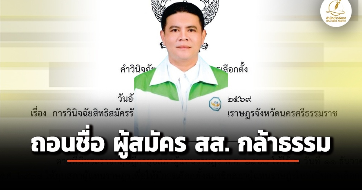 • กกต. ถอนชื่อ 'ก้องเกียรติ' ผู้สมัครสส.นครศรีฯ เขต 7 กล้าธรรม เหตุ เคยต้องคำพิพากษาลักทรัพย์