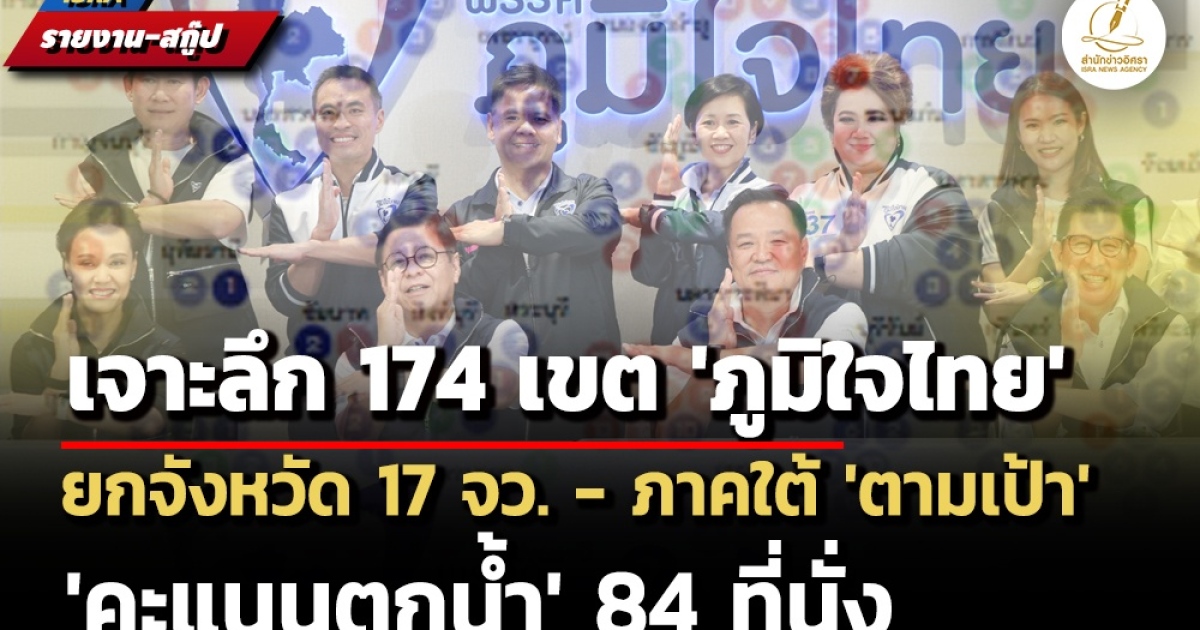 • เจาะลึก 174 สส.เขต 'ภูมิใจไทย' ยกจังหวัด 17 จว. ภาคใต้ 'ตามเป้า' - 'คะแนนตกน้ำ' 84 ที่นั่ง