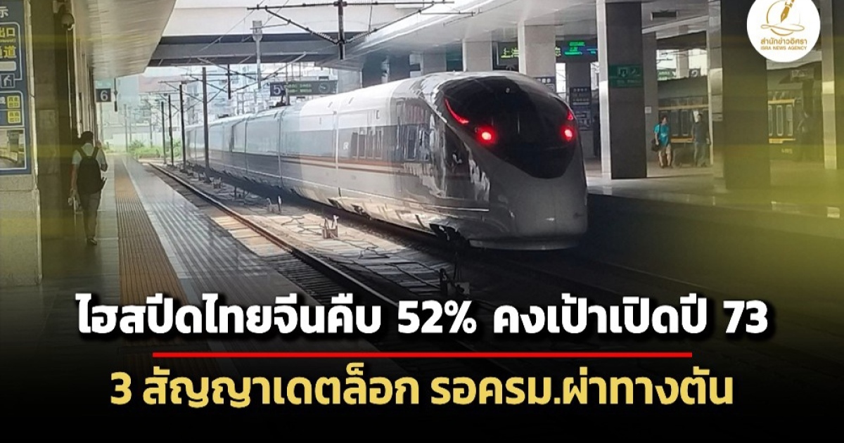สำนักข่าวอิศรา (www.isranews.org) รายงานว่า วันที่ 18 มีนาคม 2569 นายอนันต์ โพธิ์นิ่มแดง รองผู้ว่าการรถไฟแห่งประเทศไทย และรักษาการผู้ว่าการ การรถไฟแห่งประเทศไทย (รฟท.) เปิดเผยว่า การก่อสร้างโครงการรถไฟความเร็วสูงไทย-จีน ระยะที่ 1 ช่วงกรุงเทพฯ-นครราชสีมา ระยะทาง 250.77 กิโลเมตร (กม.) วงเงินลงทุน 179,412.21 ล้านบาท หลังจากเริ่มก่อสร้างเมื่อปลายปี 2560 ความคืบหน้าล่าสุด ณ สิ้นเดือนก.พ.2569 งานโยธา มีผลงานประมาณ 52% ภาพรวมการก่อสร้างงานยังมีความล่าช้าและยังมีปัญหาอุปสรรค เรื่องการส่งมอบพื้นที่ ซึ่งจะเร่งดูรายละเอียดเรื่องนี้เพื่อหาทางแก้ปัญหากและกำหนดตารางเวลาการดำเนินงานของแต่ละสัญญาให้ชัดเจน โดยขณะนี้ยังคงเป้าหมายแล้วเสร็จและเปิดให้บริการในปี 2573