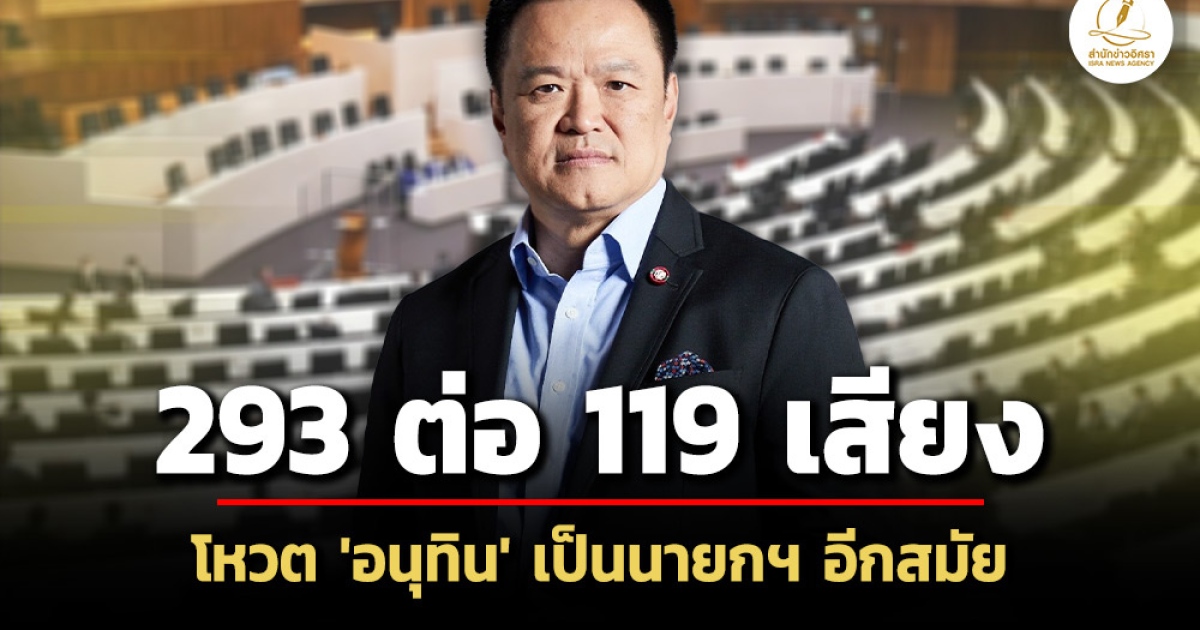 @ ฉลุย โหวต อนุทิน นายกฯ อีกสมัย 293 ต่อ 119 เสียง
