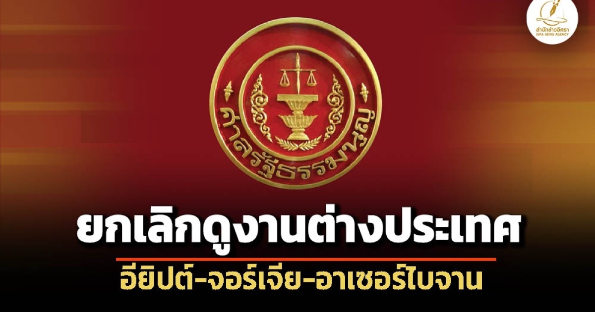 สำนักข่าวอิศรา (www.isranews.org) รายงานว่า วันที่ 26 มีนาคม 2569 สำนักงานศาลรัฐธรรมนูญ ได้ส่งเอกสารรายละเอียดการยกเลิกศึกษาดูงานสาธารณรัฐอาหรับอียิปต์ ระหว่างวันที่ 24 เมษายน - 2 พฤษภาคม 2569 และประเทศจอร์เจียและสาธารณรัฐอาเซอร์ไบจาน ระหว่างวันที่ 14 - 24 พฤษภาคม 2569 โดยมีรายละเอียดดังนี้