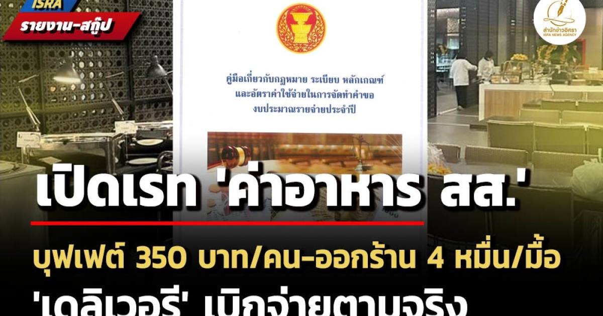 เปิดคู่มือ กำหนดหลักการรายการอัตราค่าอาหารและเครื่องดื่มสำหรับการเบิกจ่ายค่าอาหารและเครื่องดื่ม สส. ปี 62 อาหารเช้า-ค่ำ-ดึก 250 บาท/คน บุฟเฟต์ 350 บาท/คน-ออกร้าน/ไม่ต่ำกว่า 4 ร้าน 4 หมื่นบาท/มื้อ Delivery เบิกจ่ายตามจริง