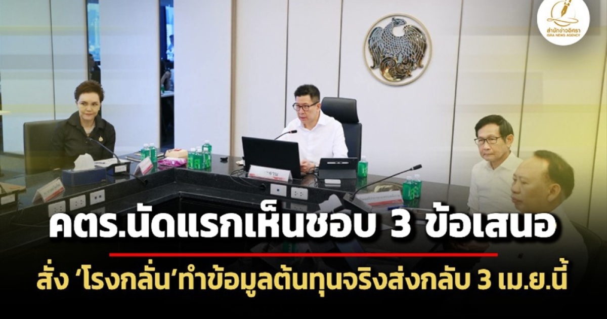 คตร.ประชุมนัดแรก 4 ชม. เห็นชอบ 3 ข้อเสนอให้ ‘กระทรวงพลังงาน’ ทำต่อ ได้แก่ ลดค่าการกลั่น/หาต้นทุน War Premium/ทบทวนค่าการตลาด พร้อมสั่งโรงกลั่นทำข้อมูลต้นทุนที่แท้จริงส่งกลับมาภายในวันที่ 3 เม.ย.นี้ หวังทำให้จบก่อน 6 เม.ย. เพื่อเสนอที่ประชุมครม.นัดแรก