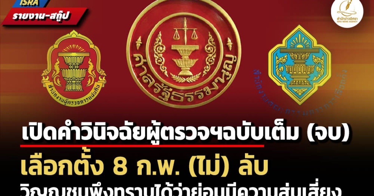 ตอนนี้จะเป็น 'ตอนจบ' ซึ่งเป็น 'ตอนสุดท้าย' เป็นคำวินิจฉัยของผู้ตรวจการแผ่นดิน 8 หน้ากระดาษ จากทั้งหมด 19 หน้า…เป็น 'คำตอบ' ของการยื่นศาลรัฐธรรมนูญชี้ขาดว่า การเลือกตั้งเมื่อวันที่ 8 ก.พ.2569 เป็นไปโดยตรงและลับหรือไม่
