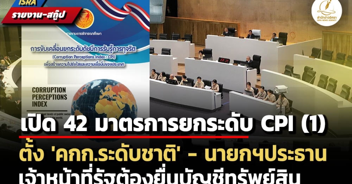 สำนักข่าวอิศรา (www.isranews.org) ขอนำเสนอรายงานการพิจารณาศึกษาการขับเคลื่อนยกระดับดัชนีการรับรู้การทุจริต (Corruption Perceptions Index : CPI) เพื่อสร้างความโปร่งใสและความเชื่อมั่นของประเทศ ของคณะกรรมาธิการกิจการองค์กรอิสระตามรัฐธรรมนูญ การป้องกันและปราบปรามการทุจริต ประพฤติมิชอบและการเสริมสร้างธรรมาภิบาล วุฒิสภา ที่มี พล.ต.ต.ฉัตรวรรษ แสงเพชร สมาชิกวุฒิสภา (สว.) เป็นประธาน ในส่วนของ ข้อเสนอแนะการขับเคลื่อนยกระดับดัชนีการรับรู้การทุจริต (Corruption Perceptions Index : CPI) ประกอบด้วยนโยบาย 5 ด้าน รวม 42 มาตรการ มีรายละเอียดดังนี้