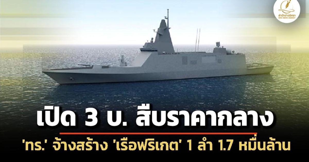 สำนักข่าวอิศรา (www.isranews.org) รายงานว่า เมื่อเร็วๆ นี้ เว็บไซต์ระบบจัดซื้อจัดจ้างภาครัฐด้วยอิเล็กทรอนิกส์ กรมบัญชีกลาง ได้เผยแพร่ประกาศราคากลาง โครงการ จ้างสร้างเรือฟริเกต จำนวน 1 ลำ มีกองทัพเรือ โดยสำนักงานจัดหายุทโธปกรณ์ทหารเรือ เป็นหน่วยงานเจ้าของโครงการ วงเงินงบประมาณที่ได้รับจัดสรร 1.7 หมื่นล้านบาท กำหนดราคากลาง 1.7 หมื่นล้านบาท มี พล.ร.ต.สรรเสริญ สาโดด เป็นประธานกรรมการ ผู้รับผิดชอบกำหนดราคากลาง ทั้งนี้ แหล่งที่มาของราคากลาง ใช้ราคาที่ได้มาจากการสืบราคาจากท้องตลาด จำนวน 3 บริษัท ดังนี้