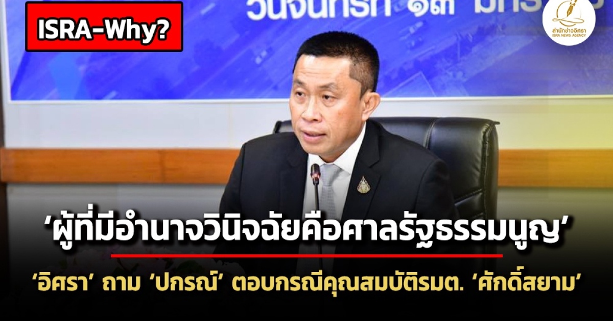 ‘อิศรา’ถาม ‘ปกรณ์’ตอบกรณีคุณสมบัติรัฐมนตรี ‘ศักดิ์สยาม’ หลังป.ป.ช.มีมติไม่ชี้มูลความผิดกรณีใช้นอมินีถือหุ้น ‘บุรีเจริญฯ’ ชี้ผู้ที่มีอำนาจวินิจฉัยคือศาลรัฐธรรมนูญ