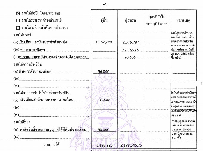 รายชื่อที่น่าสนใจ นายธนาธร จึงรุ่งเรืองกิจ หัวหน้าพรรคอนาคตใหม่ แจ้งทรัพย์สินรวมคู่สมรส 5,632,536,266 บาท หนี้สิน 683,303 บาท มีรายได้รวม 188,606,720 บาท รายจ่าย 66 ล้านบาท ทรัพย์สินที่น่าสนใจมีการแจ้งเงินปล่อยกู้ยืมพรรคอนาคตใหม่ 191.2 ล้านบาท