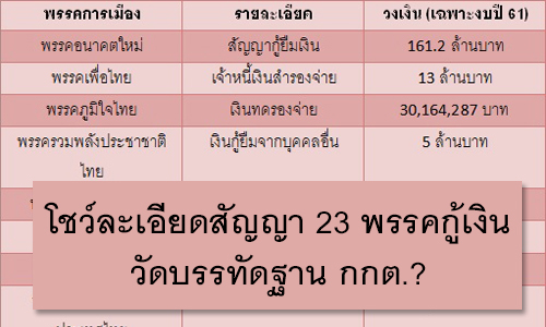 ไม่ใช่แค่ อนค.! เปิดอีก 7 พรรคกู้ยืมเงิน กก.บริหารฯหลักสิบล.-ใช้เป็นเงินทดรองจ่าย?