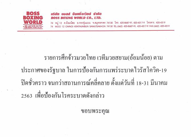 ก่อนที่จะมีการปิดสนามมวย ในเวลาต่อมาหลังจากที่สถานการณ์การแพร่ระบาดของเชื้อโรคโควิด มีความรุนแรงมากขึ้น