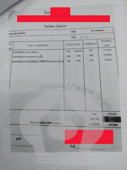 1. แอลกอฮอล์ ขนาด 1,000 ML. จำนวน 200 แกลลอน ราคาต่อหน่วย 690 บาท รวมเป็นเงิน 138,000 บาท