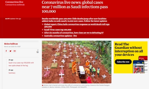 สำหรับความเคลื่อนไหวเกี่ยวกับสถานการณ์การแพร่ระบาดของไวรัสโควิดทั่วโลกนั้น ในช่วงเช้าวันที่ 8 มิ.ย. ตามเวลาประเทศไทย เว็บไซต์ World Meter ได้รายงานจำนวนตัวเลขผู้ป่วยทั้งสิ้นว่า มีอยู่ที่ 7,082,212 ราย เป็นผู้ป่วยรายใหม่ 113,090 ราย เสียชีวิต 405,081 ศพ เป็นผู้เสียชีวิตรายใหม่ 3,382 ศพ