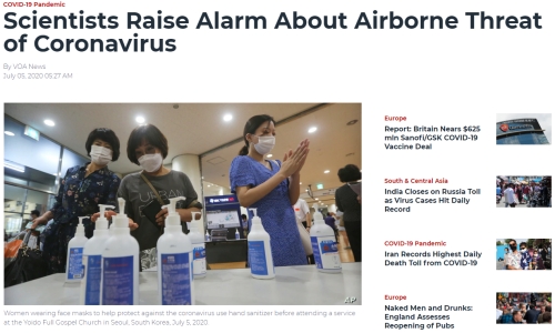 ส่วนสถานการณ์อื่นๆในสหรัฐฯ มีรายงานข่าวจากสำนักข่าวนิวยอร์กไทม์ว่า นักวิทยาศาสตร์จำนวน 239 คน จาก 32 ประเทศทั่วโลก ได้ส่งจดหมายเปิดผนึกถึงองค์การอนามัยโลกหรือ WHO เพื่อให้พิจารณาคำเตือนเกี่ยวกับการเฝ้าระวังการติดเชื้อโควิด 19 เนื่องจากพบหลักฐานว่าเชื้อโควิด 19 นั้นมีความสามารถในการแพร่เชื้อทางอากาศด้วยอนุภาคต่ำกว่า 5 ไมครอนได้ หรือที่เรียกกันว่าการแพร่เชื้อแบบ Airborne