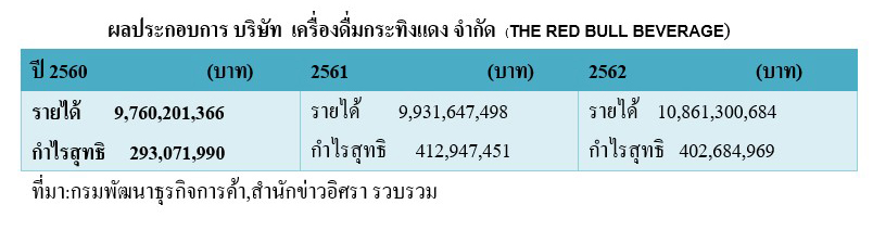 ทั้งหมดคือข้อมูลทางด้านธุรกิจของกลุ่มเครื่องดื่มกระทิงแดงในปัจจุบัน