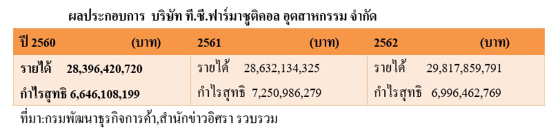 เฉพาะ 2 บริษัทไฮไลท์ คือ บริษัท ที.ซี.ฟาร์มาซูติคอล อุตสาหกรรม จำกัด และ บริษัท เครื่องดื่มกระทิงแดง จำกัด รอบปีสิ้นสุด 31 ธ.ค.2562 มีรายได้รวม 40,679,160,475 บาท กำไรสุทธิรวม 7,399,147,738 บาท