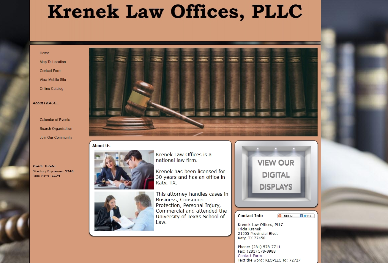 ทั้งนี้ KRENEK LAW OFFICES, PLLC ยังระบุข้อมูลไว้ว่า จัดตั้งมาเป็นระยะเวลากว่า 30 ปีแล้ว โดยหน้าที่บริษัทนั้นมีหน้าที่่รับผิดชอบในคดีด้านธุรกิจ การคุ้มครองผู้บริโภค ความเสียหายส่วนบุคคล และผู้ก่อตั้งบริษัทยังจบมาจากวิทยาลัยกฎหมาย มหาวิทยาลัยเท็กซัส