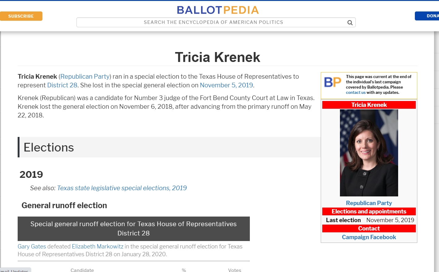ล่าสุด สำนักข่าวอิศรา สืบค้นข้อมูลเว็บไซต์ Krenek Law Offices,PLLC เพิ่มเติมพบว่า นาง ทริเซีย เครเน็ค ปรากฎชื่อเป็นผู้ก่อตั้งบริษัทกฎหมายแห่งนี้ และนาง ทริเซีย เครเน็ค ยังเป็นผู้สมัครเลือกตั้งสมาชิกสภาผู้แทนราษฎรพรรครีพับลิกัน แต่แพ้การเลือกตั้งในวันที่ 6 พ.ย. 2561 และในวันที่ 5 พ.ย. 2562 ที่ผ่านมา