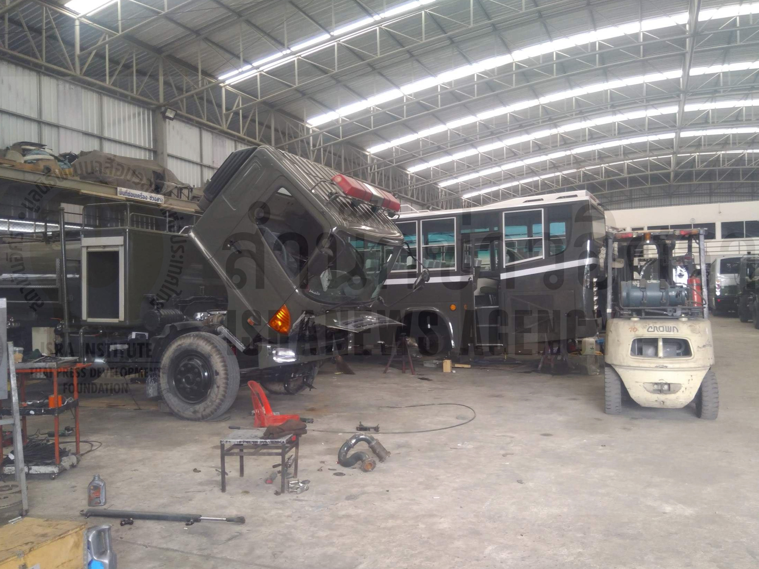 ขณะที่พนักงานบริษัทฯ ให้ข้อมูลว่า ในบางวันจะมีนายทหารเข้ามาตรวจบริษัทและตรวจงานซ่อมบำรุงรถอยู่เป็นระยะๆ