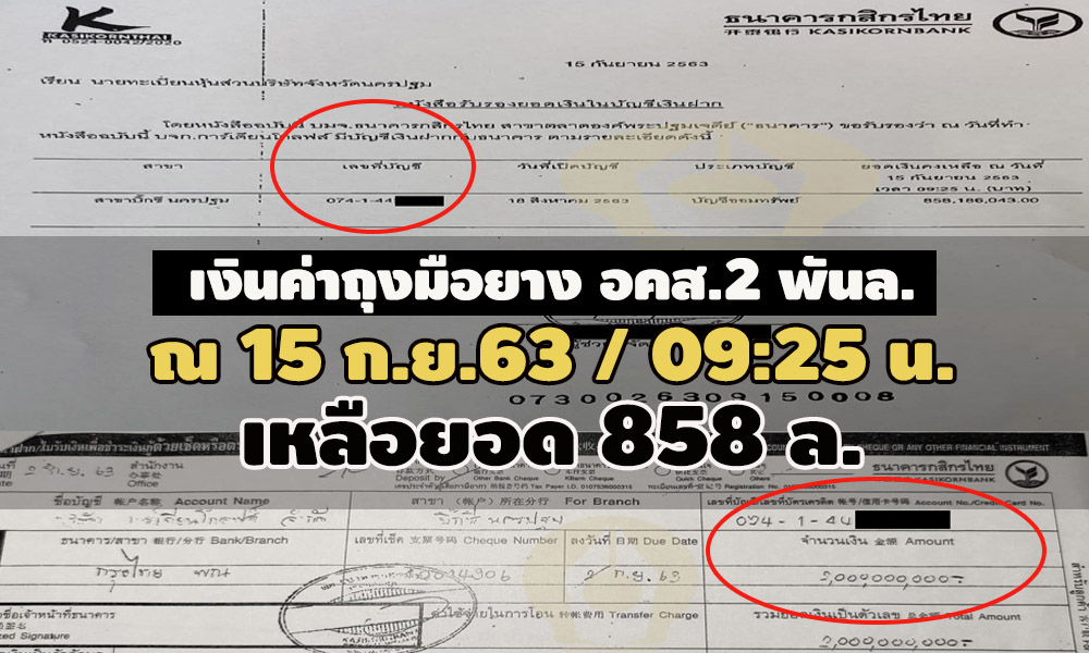 โชว์ใบฝากเงิน 2 พันล.! อคส.จ่ายค่าถุงมือยาง บ.การ์เดียนฯ-เข้าบช.กสิกรไทย บิ๊กซีนครปฐม