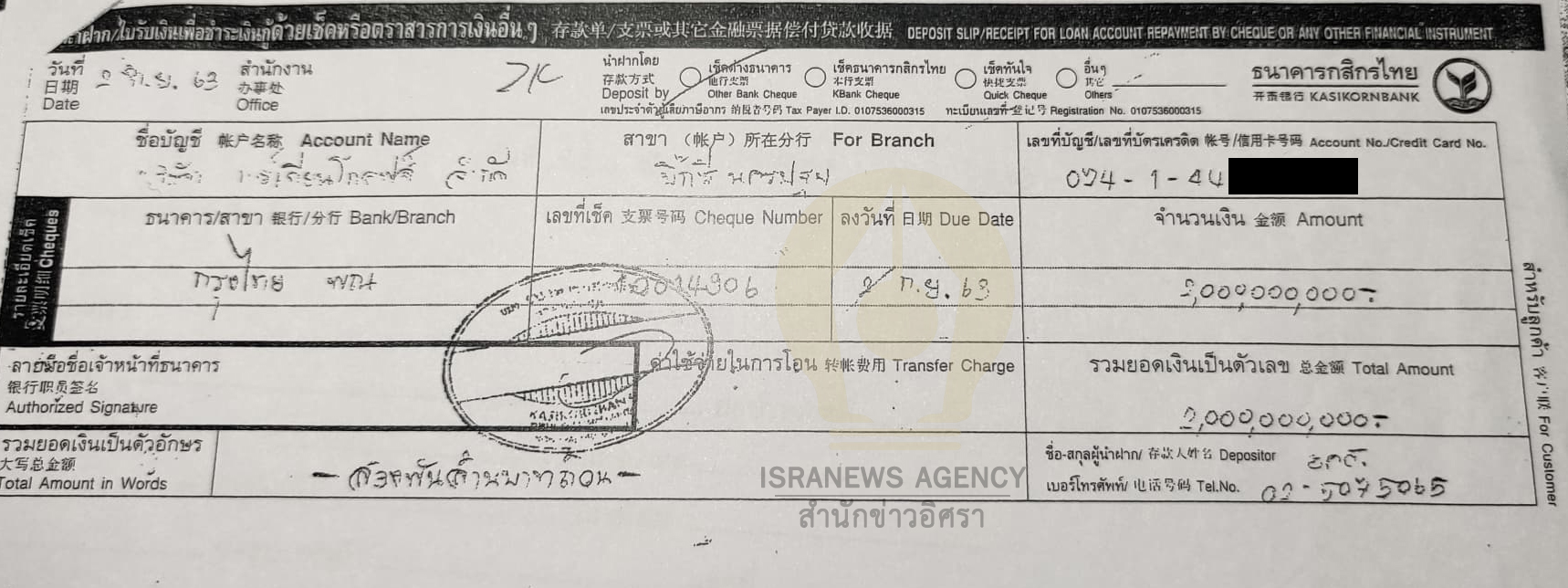 (2) บัญชีธนาคารสาขาตลาดองค์พระปฐมเจดีย์ เลขที่ 074-1-4430X-X วันเปิดบัญชี 18 ส.ค.2563 วงเงิน 858,186,043 บาท