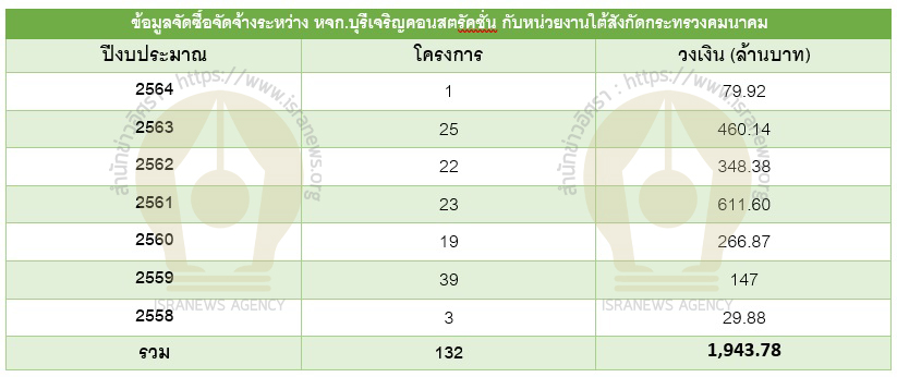 (ข้อมูลการจัดซื้อจัดจ้างภาครัฐของ หจก.บุรีเจริญคอนสตรัคชั่น, สำนักข่าวอิศรา รวบรวม)