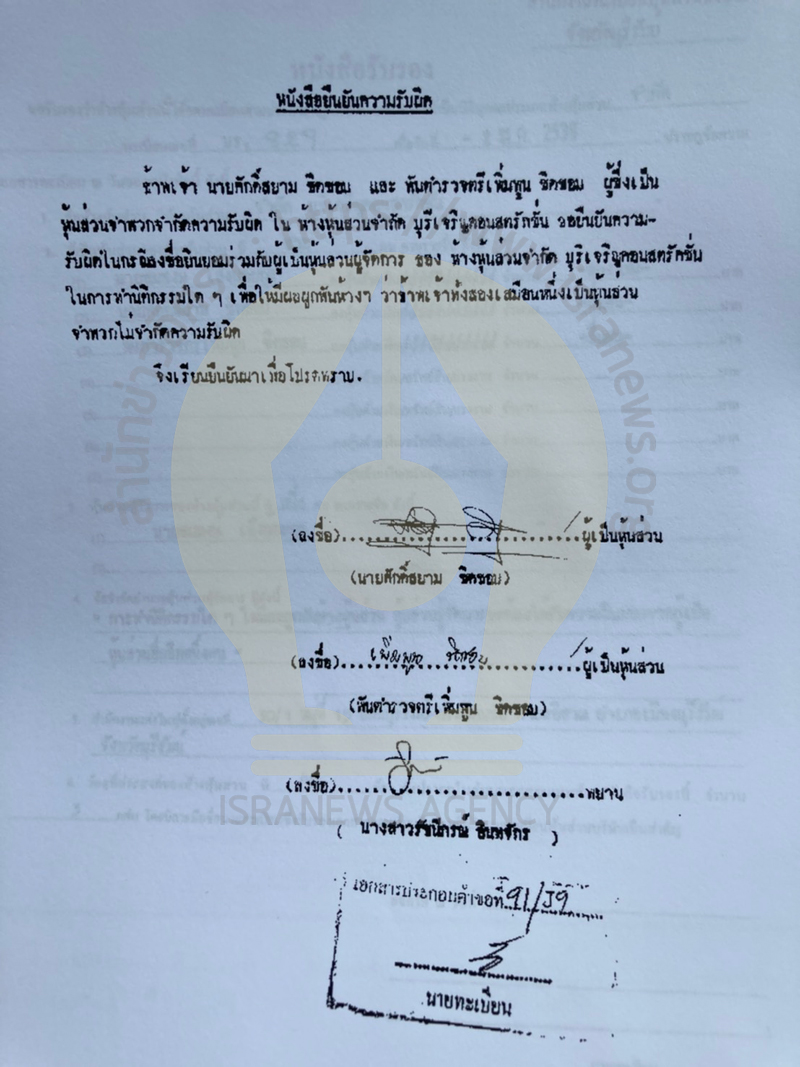 นายศักดิ์สยาม และนายเพิ่มพูน ทำหนังสือยืนยันความรับผิดด้วยว่า ทั้ง 2 รายเป็นหุ้นส่วนจำพวกจำกัดความรับผิดใน หจก.บุรีเจริญคอนสตรัคชั่น ขอยืนยันความรับผิดในกรณีลงชื่อยินยอมร่วมกับผู้เป็นหุ้นส่วนผู้จัดการ (นายสมพงษ์) ในการทำนิติกรรมใด ๆ เพื่อให้มีผลผูกพัน หจก.ดังกล่าวว่า ทั้ง 2 รายเสมือนหนึ่งเป็นหุ้นส่วนจำพวกไม่จำกัดรับผิด