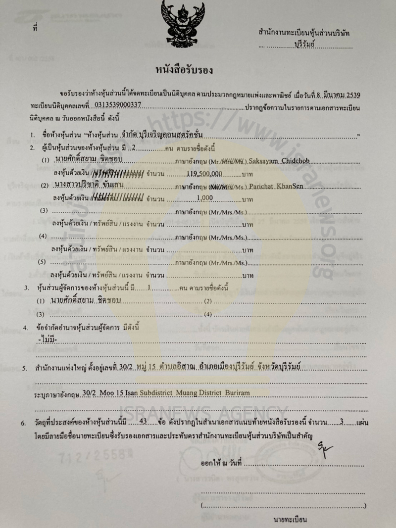 หลังจากนั้นเมื่อวันที่ 30 มี.ค. 2558 หจก.บุรีเจริญคอนสตรัคชั่น แจ้งต่อนายทะเบียนเพื่อขอเพิ่มทุน โดยมีนายศักดิ์สยาม เป็นหุ้นส่วนผู้จัดการ และเป็นผู้ถือหุ้นใหญ่ มูลค่า 25.5 ล้านหุ้น ส่วน น.ส.ปาริชาติ ขันเสน ถือหุ้นอยู่มูลค่า 1,000 บาท และแจ้งเปลี่ยนที่ตั้ง หจก.บุรีเจริญคอนสตรัคชั่น จากเดิมเลขที่ 229 ม.11 ต.เสม็ด อ.เมืองบุรีรัมย์ จ.บุรีรัมย์ เป็นเลขที่ 30/2 ม.15 ต.อิสาณ อ.เมือง จ.บุรีรัมย์ ซึ่งเป็นที่อยู่ของนายศักดิ์สยาม ที่แจ้งตามบัตรประชาชน และที่แจ้งต่อกรมพัฒนาธุรกิจการค้า