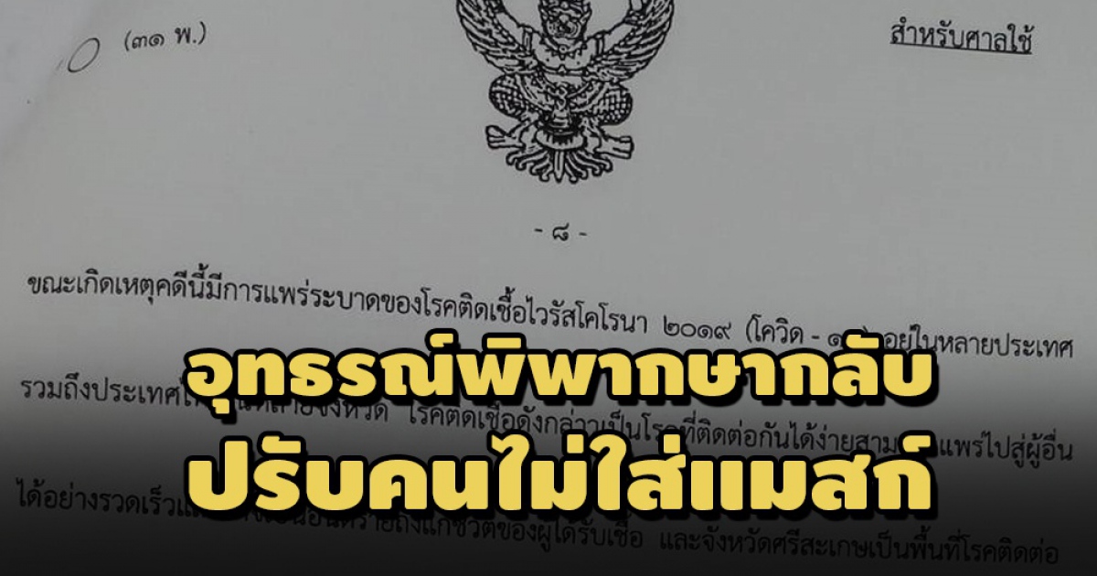 ศาลอุทธรณ์ ภาค 3 พิพากษากลับ! สั่งปรับ 2 นศ.ขับจักรยานยนต์ไม่สวมแมสก์ออกจากบ้าน ช่วงโควิด-19 ระบาดปี 63 คนละ 1,000 บาท ชี้คำสั่งผู้ว่าฯศรีสะเกษให้สวมแมสก์ชอบด้วยกฎหมาย ยังอยู่ในวัยเรียน-รับสารภาพ ลดโทษเหลือปรับคนละ 500 บาท