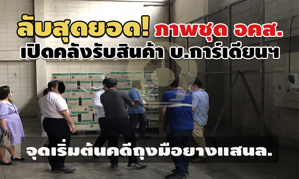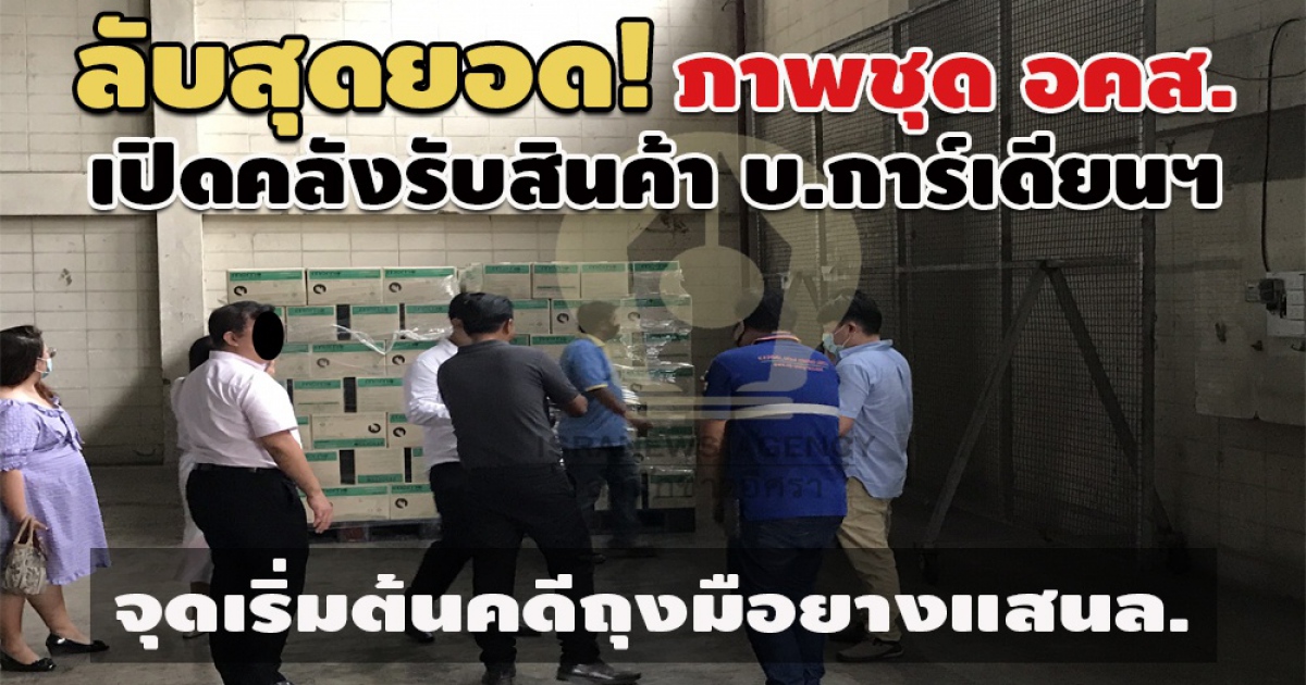 โดยมีเจ้าหน้าที่ อคส. ส่วนหนึ่ง และคนจากบริษัท การ์เดียนโกลฟส์ จำกัด เดินทางไปร่วมตรวจสอบรายละเอียดสินค้าด้วย (ดูภาพประกอบ)