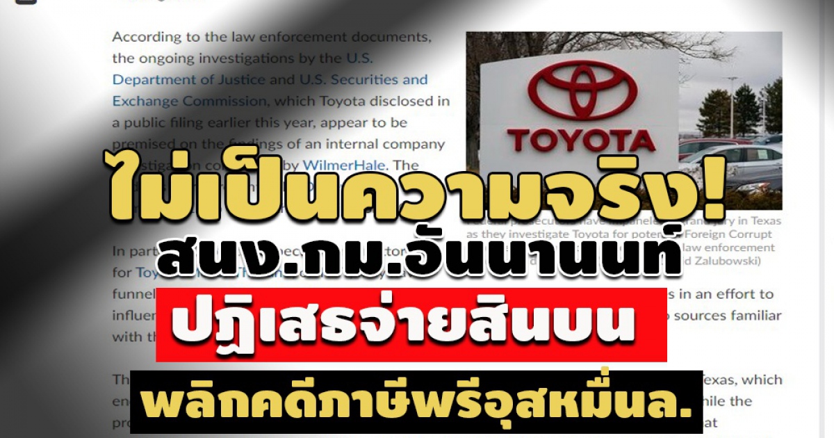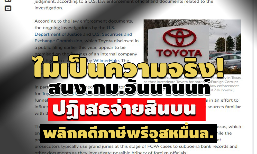เปิดข้อมูลลับโตโยต้า! สอบสวน บ.ลูกไทย จ่ายสินบน พ.ศาลฎีกาพลิกคดีภาษีหมื่นล.