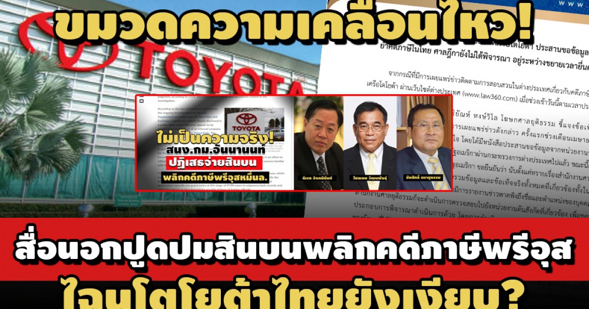เปิดข้อมูลลับโตโยต้า! สอบสวน บ.ลูกไทย จ่ายสินบน พ.ศาลฎีกาพลิกคดีภาษีหมื่นล.