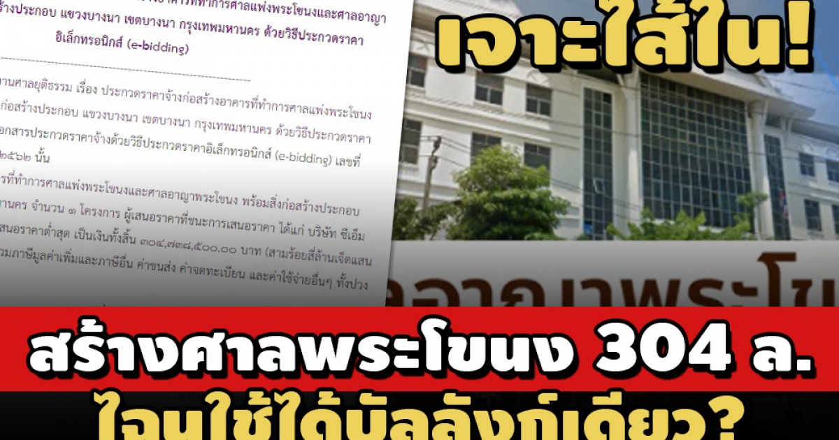 • เจาะไส้ใน! ประมูลสร้างศาลพระโขนง 304 ล.ไฉนตรวจรับงานแล้วใช้ได้บัลลังก์เดียว?