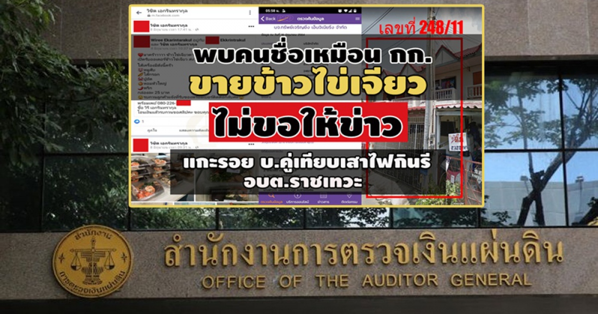 (อ่านประกอบ: แกะรอย บ.คู่เทียบเสาไฟกินรี อบต.ราชเทวะ พบคนชื่อเหมือน กก.โพสต์ขายไข่เจียว-ไม่ขอให้ข่าว)