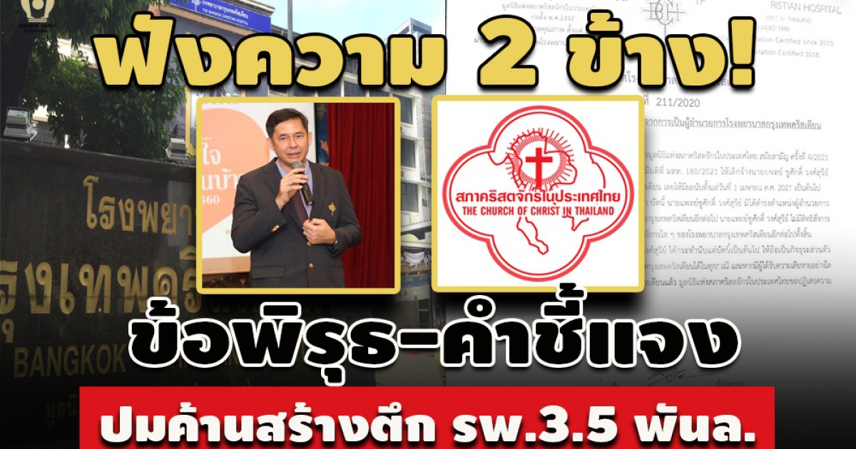 (อ่านประกอบ : ยื่นฟ้องศาลแรงงาน! ผอ.รพ. กรุงเทพคริสเตียนถูกสั่งปลด หลังค้านสร้างตึก 3,500 ล.,ชนวนปลดฟ้าผ่า ผอ.รพ. กรุงเทพคริสเตียน! ศาลฯ สั่งคุ้มครองชั่วคราวสร้างตึก 3.5 พันล.)