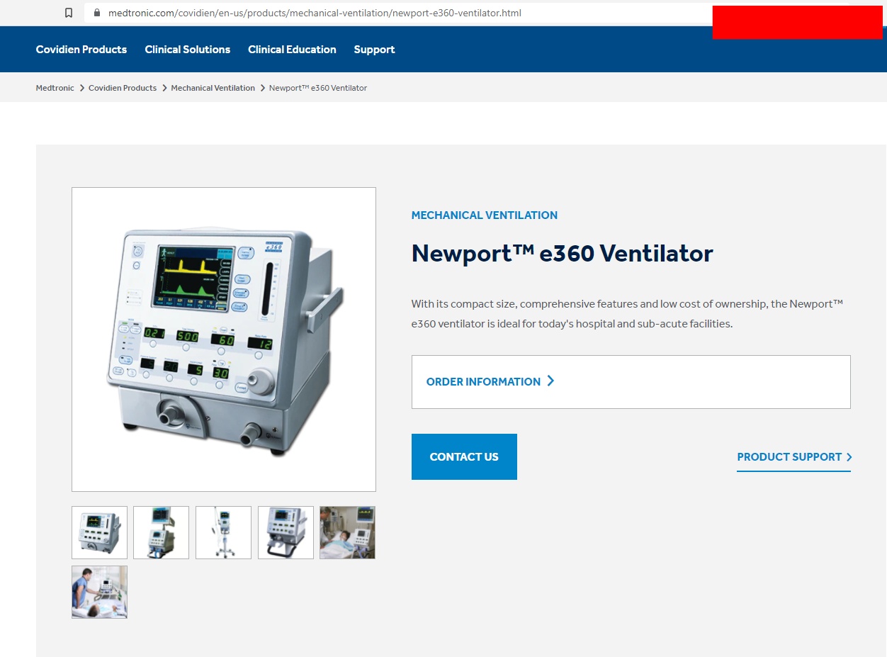 อย่างไรก็ตาม พบข้อมูลว่าเครื่องช่วยหายใจรุ่นดังกล่าวที่มีชื่อว่า Covidien e360 กลับถูกขายในตลาดในประเทศสหรัฐฯด้วยราคาที่ถูกกว่ากันถึงครึ่งหนึ่ง ซึ่งราคาที่ถูกกว่ากันดังกล่าวนั้นถูกอ้างถึงบนเว็บไซต์ค้าปลีกด้านอุปกรณ์เทคโนโลยีทางการแพทย์ในประเทศสหรัฐฯ ซึ่งทางบริษัทเมดโทรนิคก็ได้ออกแถลงการณ์ว่าบริษัทนั้นไม่ได้ควบคุมการแจกจำหน่าย ไม่ได้ควบคุมราคา และปัจจัยอีกหลายประการที่จะส่งผลกระทบต่อราคาของสินค้า