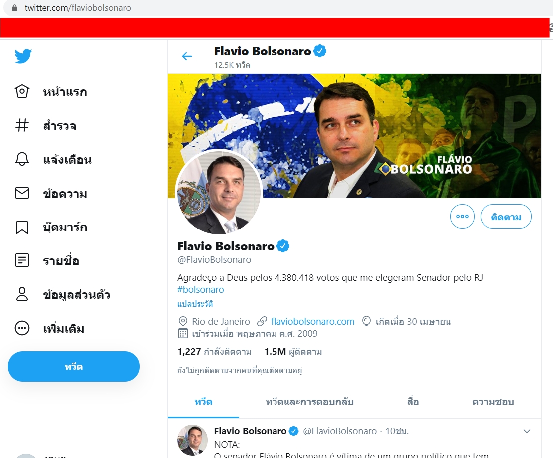 ทวิตเตอร์ส่วนตัวนายนายฟลาวิโอ โบลโซนารู