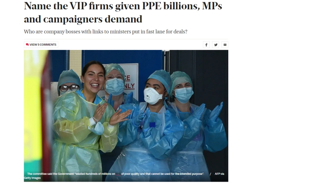 โดยสำนักข่าวอีฟนิ่งสแตนดาร์ด ของประเทศอังกฤษได้มีการรายงานในช่วงสัปดาห์ที่ผ่านมา ว่าสาธารณชนและ ส.ส.หลายคนของประเทศอังกฤษได้มีการเรียกร้องให้รัฐบาลอังกฤษเปิดเผยชื่อของบริษัทเอกชนเกือบ 50 แห่ง ที่ได้รับสัญญาระดับวีไอพีอันเกี่ยวข้องกับโควิด-19 ที่มีมูลค่ารวมทั้งสิ้น 1.7 พันล้านปอนด์ (73,141,787,700 บาท)