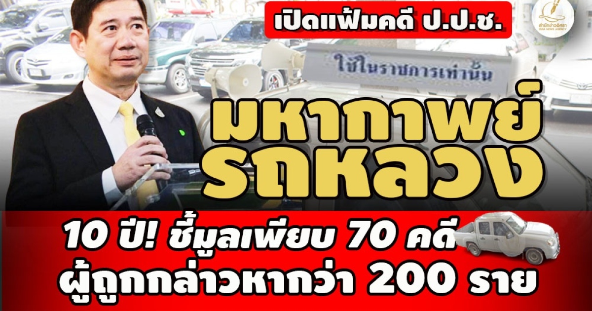 นับตั้งแต่ปี 2556 - 2566 รวมระยะเวลา 10 ปี มีข้อมูลว่า คณะกรรมการ ป.ป.ช.ได้ชี้มูลความผิดเจ้าหน้าที่รัฐที่กระทำความผิดในคดีรถหลวง ไปแล้วว่า 70 คดี รวมจำนวนผู้ถูกกล่าวหากว่า 200 ราย